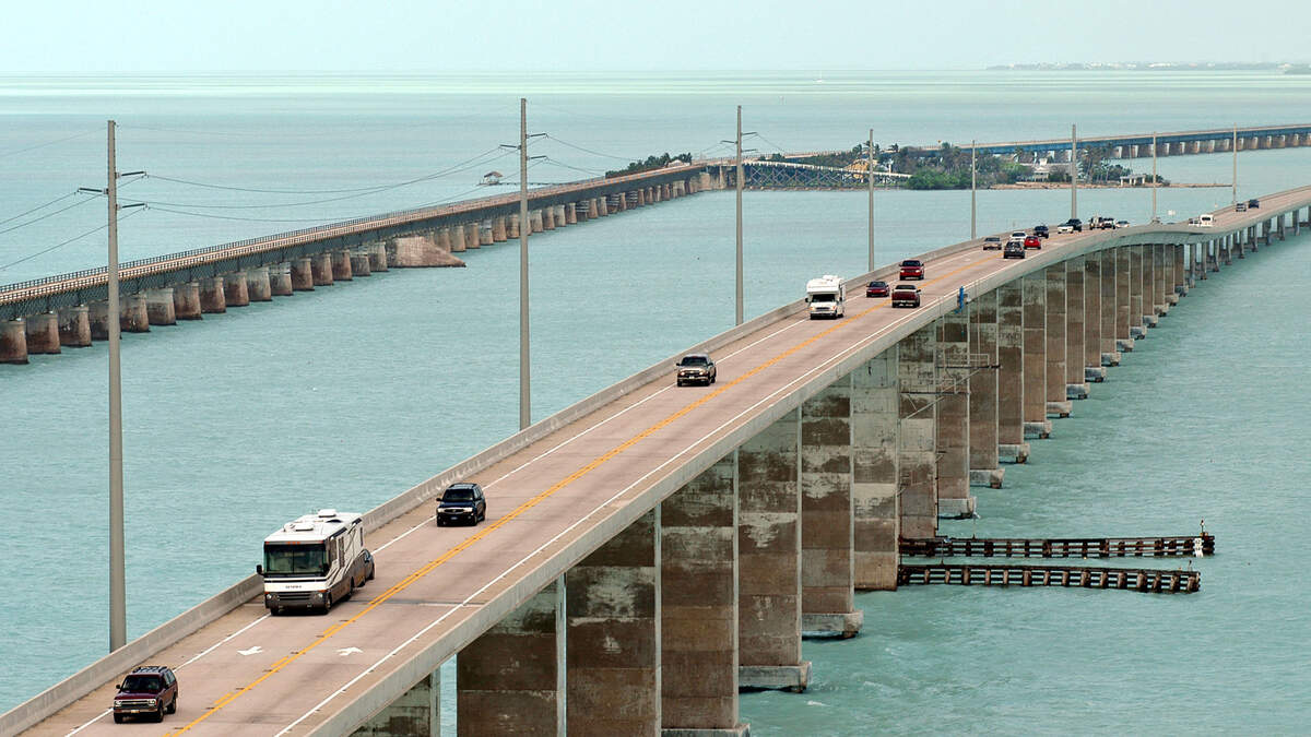 A 32-foot sailboat slammed into the south side of the Seven Mile Bridge after hitting nearby power lines and knocking power out to about 30,000 Keys Energy Services.