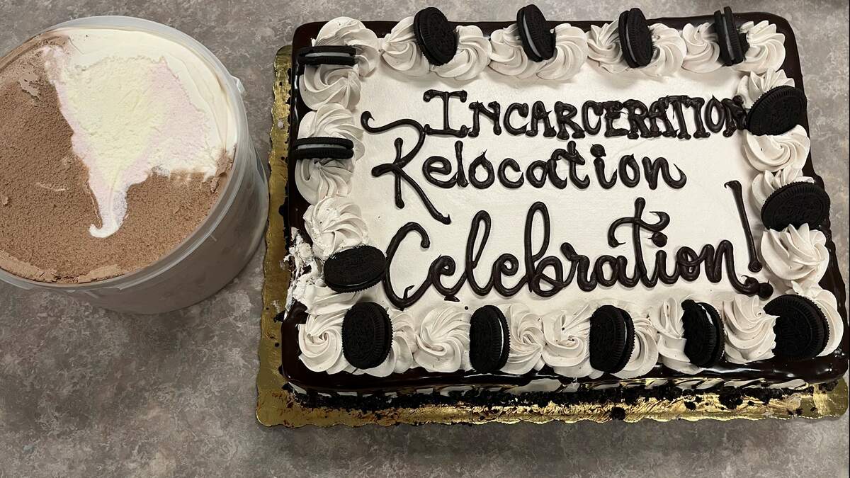 The Nassau County Sheriff's Office posted photos of a cake, a tub of Neopolitan ice cream, and employees enjoying a slice Friday afternoon (January 28). Sheriff Bill Leeper told First Coast News it was an "Incarceration Relocation Celebration" to celebrate the transfer of Kimberly Kessler from their jail.